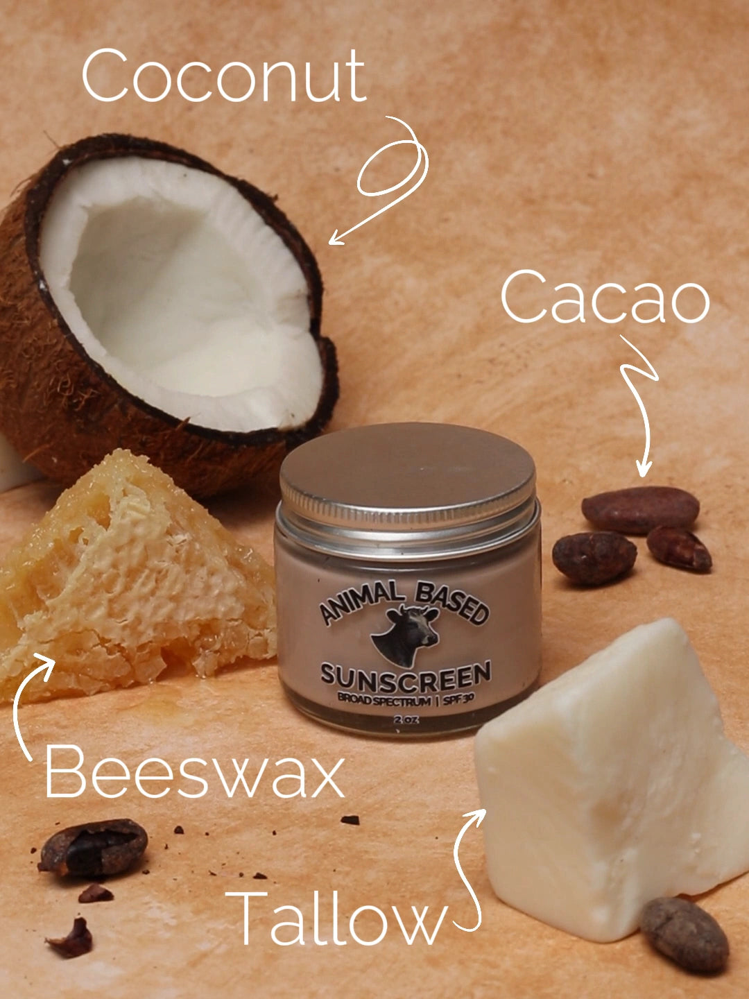 Ingredients: Tallow, Coconut Oil, Zinc Oxide, Beeswax & Cacao.